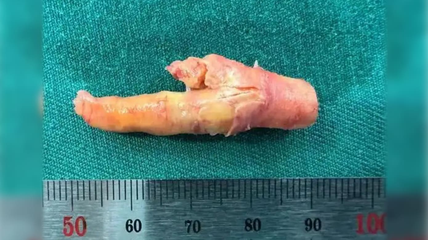 大夫为须眉紧迫支配担当颈动脉内乱膜斑块切除脚术。正在用时二个小时的脚术时代,大夫从他的血管中与出1段少约4厘米的软化斑块。